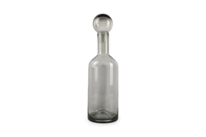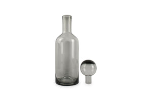 A strikingly bold and elegant Sculpted Gray Decanter bears a compelling amalgam of function and sculpture. Its elongated alluring contours and clear smoky hue demand present in the eye of every bar cart, shelf, or dining console that transforms everyday functionality into a visual spectacle.