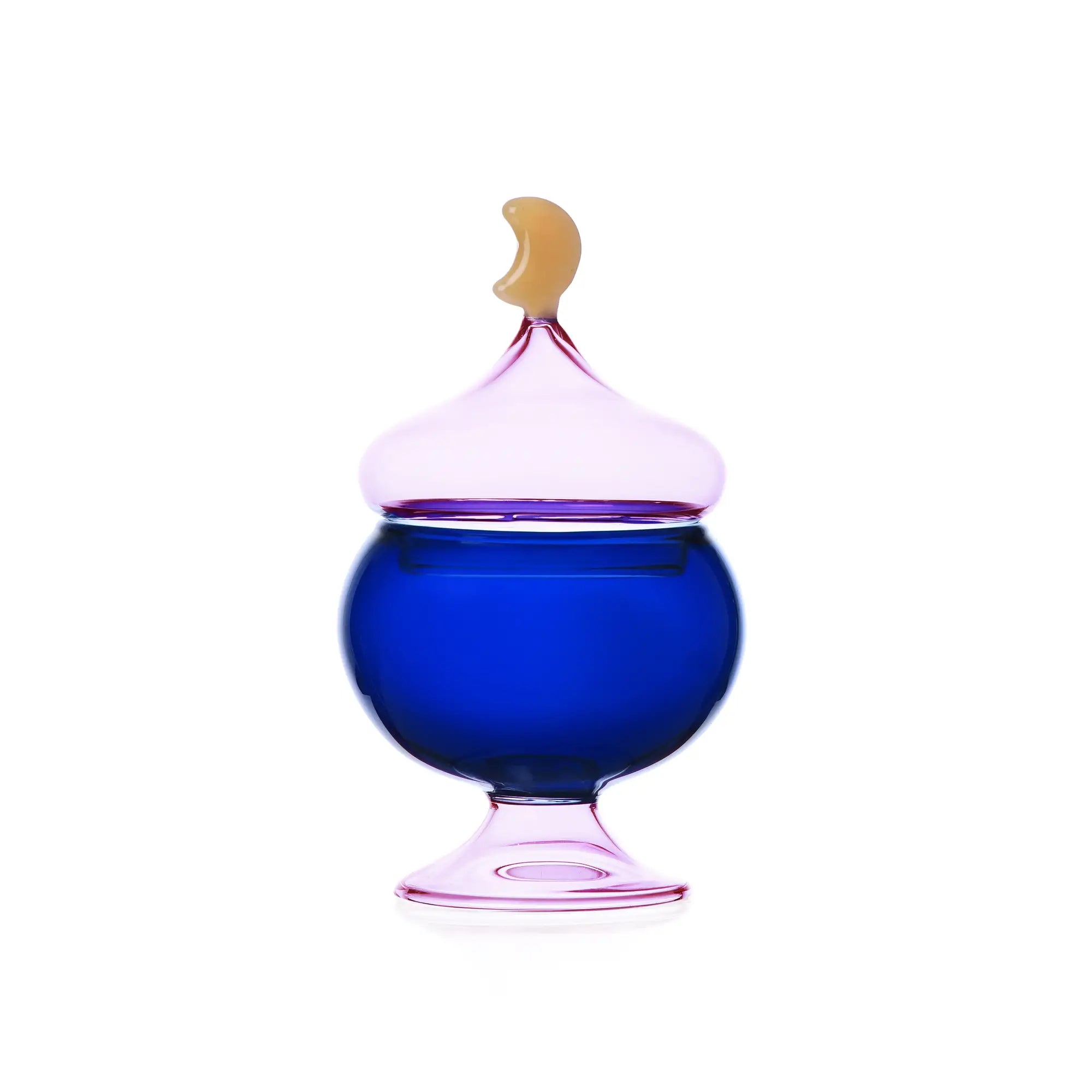 At 15.5 cm in height and 9 cm in diameter, this versatile piece works beautifully as a decorative container for small treasures, candies, or keepsakes, while also serving as a sophisticated accent in luxury interiors. Whether placed on a dressing table, console, or styled within curated displays, the Small Blue Box balances functionality with collectable art.