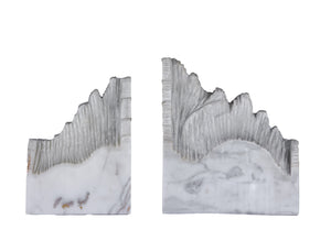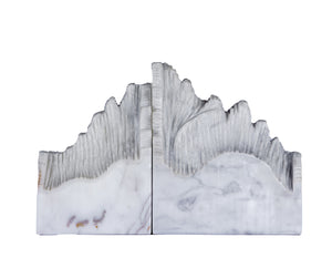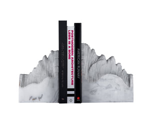 Made from natural stone, each bookend varies slightly in patterns or tones, ensuring that no two sets are alike. They flow in layered contours, mimicking the rhythm of weathered landscapes; they contrast with the smoothness of the book spines, giving style and substance to the collection.