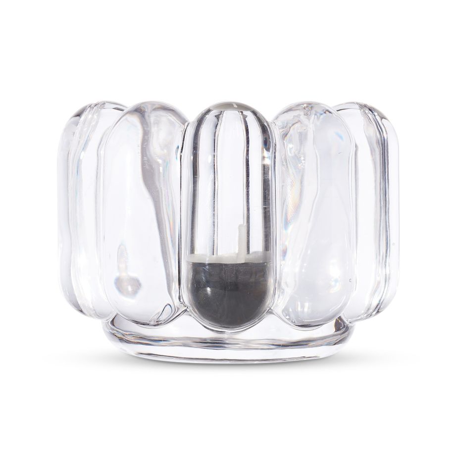 Press Tealight Vertical is an eye-catching sculpture yet perfectly functional. It dresses up any room it is put in with its warm, cozy glow. Pure glass work brings out a touch of glamour in the atmosphere and refines the beauty of any room. With a modern design now come the contemporary materials and illumination back to center stage.