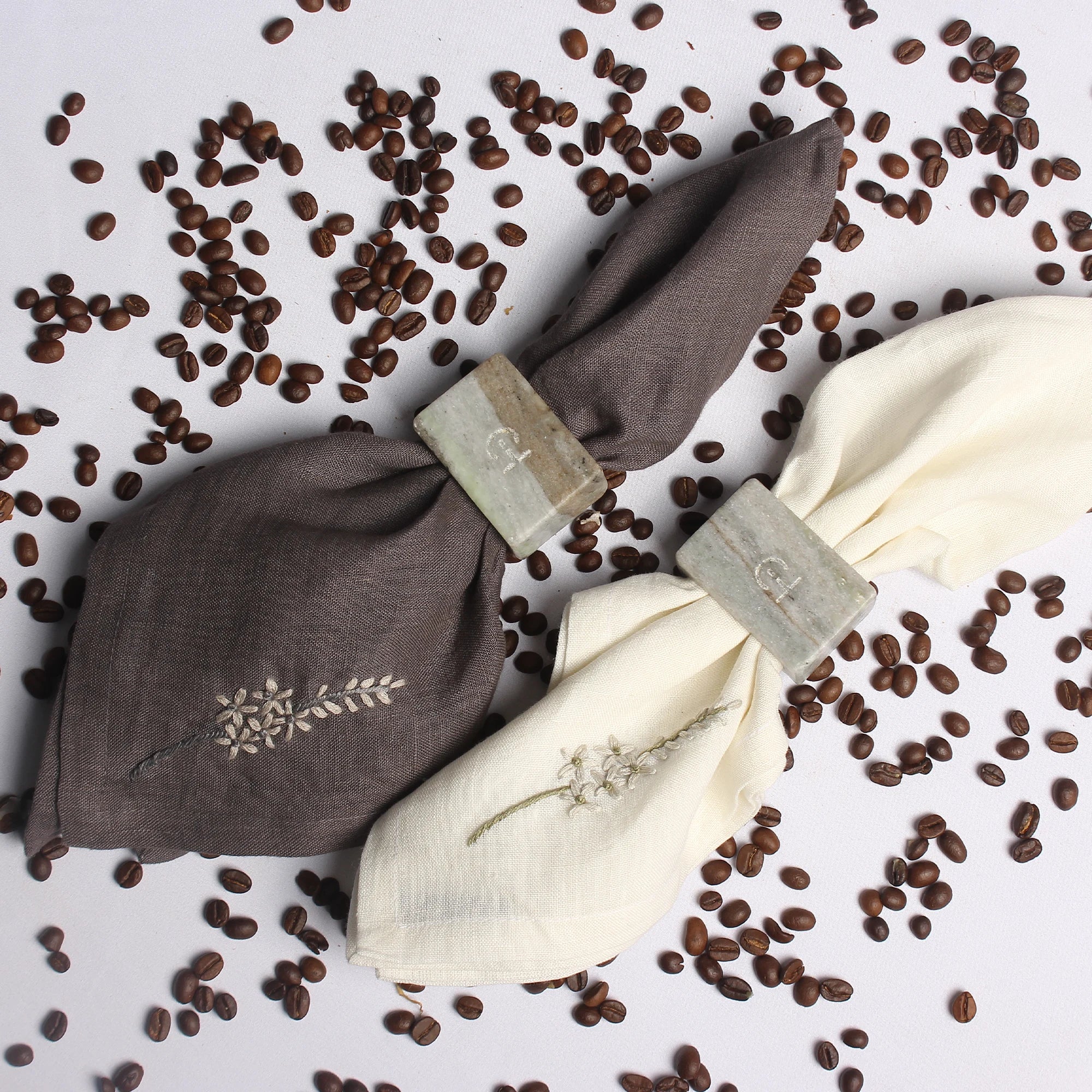 Each ring is honed to perfection, yet with the beautiful veinings and variations of the natural world- no two rings are quite like another, thus adding one more layer of artisanal uniqueness to every dining experience. A simple form which enables real beauty to shine through in the mounted stone, set against the soft framework of linen or the cotton napkin. From casual gatherings to formal events, the Stonique Napkin Ring transforms any place setting into an en masse visually composed affair.