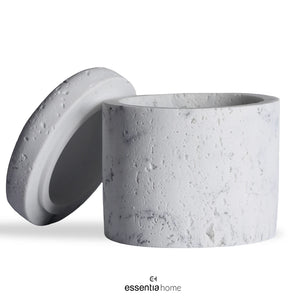 Crafted from durable polyresin, this piece mimics the luxurious appeal of real marble without the weight or fragility. Its smooth finish and subtle veining give it the look of natural stone, but with a lightweight, water-resistant build that’s ideal for humid bathroom environments. The snug-fitting lid completes the design with a minimal silhouette, keeping your essentials dust-free while maintaining a clean, sculptural presence.