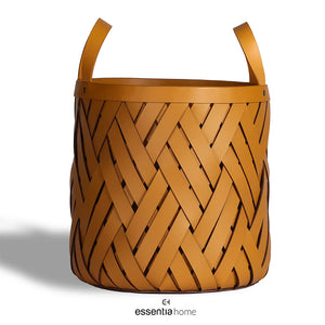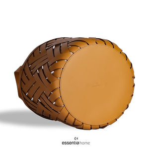 The Tall Interlace Basket in Brown introduces carefully crafted artisanal weaving techniques and rich contemporary materials into one sculptural basket. The bold crisscrossing hand-assembling in premium vegan leather makes it quintessential for interiors celebrating craftsmanship, earth tones, and a muted elegance. An extra-large oval base gives a real aesthetic purpose to organizing—that's the ethos of Essentia Home Furniture.
