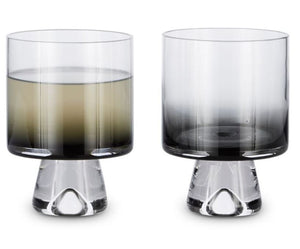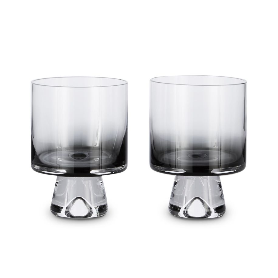 The Tank Low Ball Glasses Black by Tom Dixon embodies edgy sophistication in its bold shapes of smoked glass and sturdy base. A perfect example of modern design and refined style, these glasses prove their worth by dressing each drink in a little glamour.