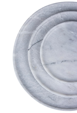 A circular silhouette creates softer lines and a balance of fluidity-ing; an impressive centrepiece in serving or displaying. Whether setting the stage for a collection of items on a coffee table, serving hors d'oeuvres, or simply accessorizing a console or vanity, the organic texture and neutral tones of the tray provide effortless calm and sculptural quality to any space.