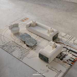 The MILO Collection isn’t just furniture—it’s a fully composed atmosphere. Crafted by Essentia Home for those who value beauty in cohesion, this exclusive ensemble brings together a statement sofa set, sculptural coffee tables, and an artistically illustrated carpet into one seamless living experience.