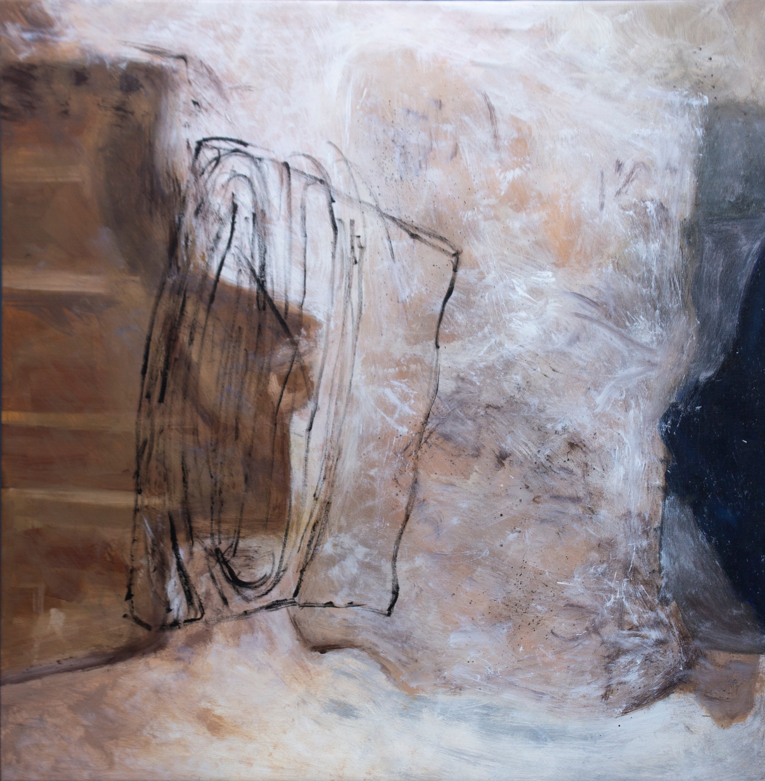 Abstract painting that uses soft, earthy tones and textured layers to evoke a sense of mystery and nostalgia. The subtle interplay of light and shadow suggests hidden stories and past experiences, inviting viewers to uncover the secrets veiled within its depths.