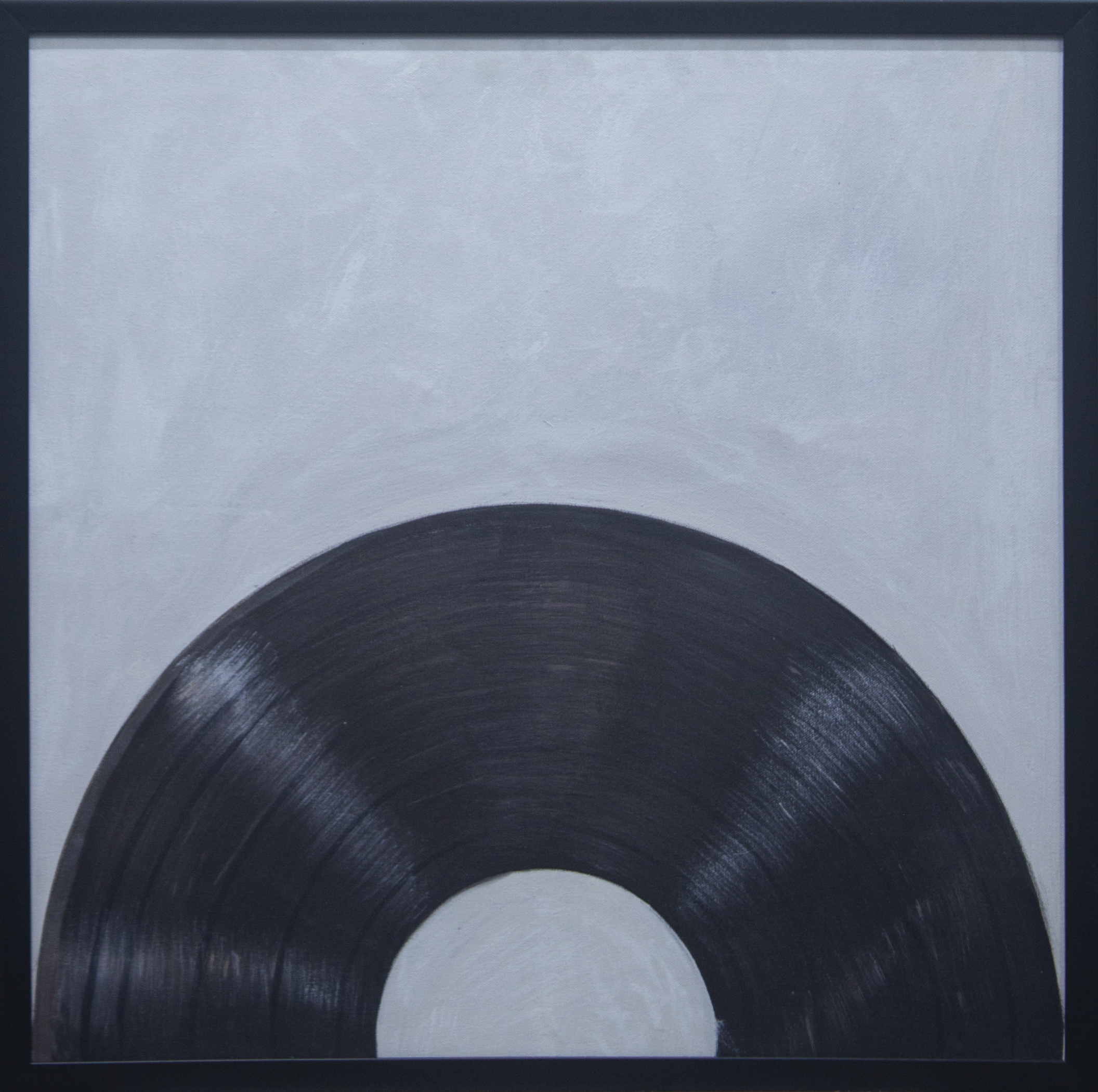 This minimalist artwork features a vinyl record partially emerging from the bottom of the canvas, set against a plain, neutral background. The simplicity of the composition emphasizes the iconic shape of the record, evoking a sense of nostalgia and appreciation for classic music mediums. The piece celebrates the timelessness of vinyl and its enduring impact on music culture.