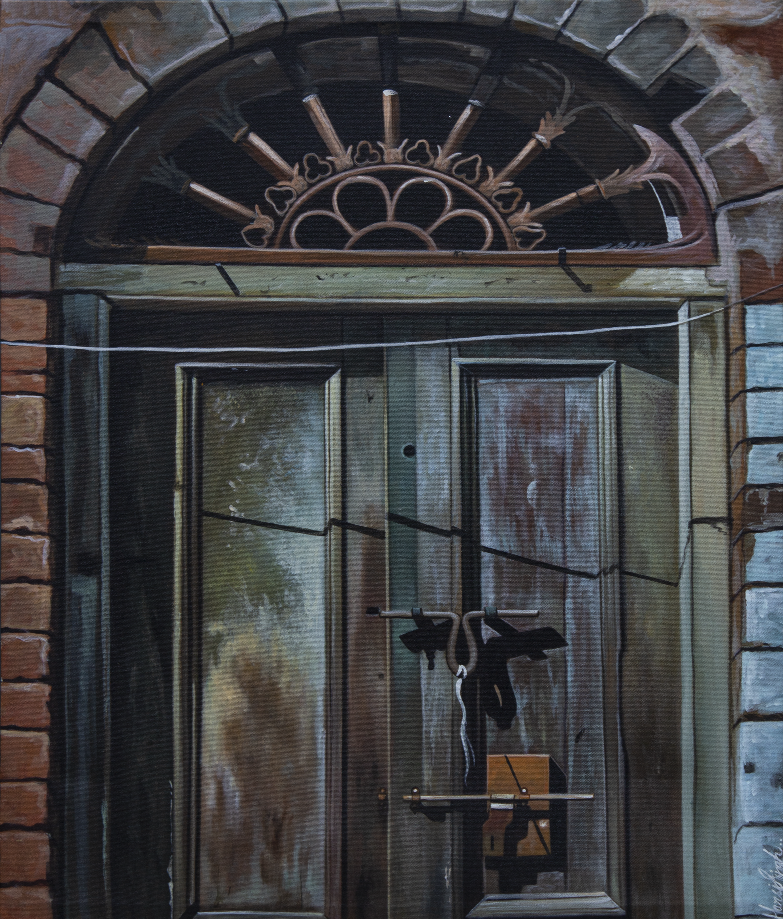 Whispers of the Past" captures the weathered elegance of an old, locked door, rich with history and character. The subtle play of light and shadow, combined with the worn textures of wood and stone, evokes a sense of mystery and nostalgia. This artwork invites viewers to ponder the stories behind the door and the lives that once passed through it.